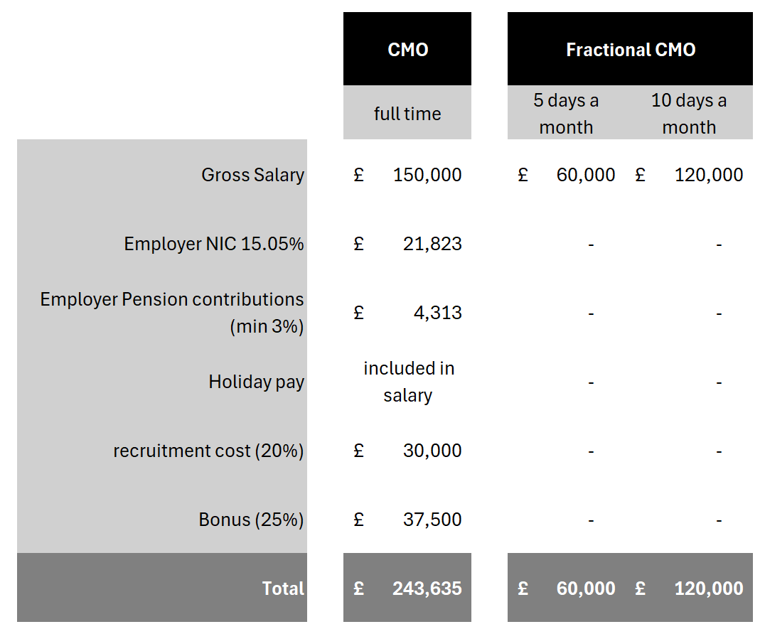 The all-inclusive cost of a CMO to a business is c. £200k to £250k a year,
